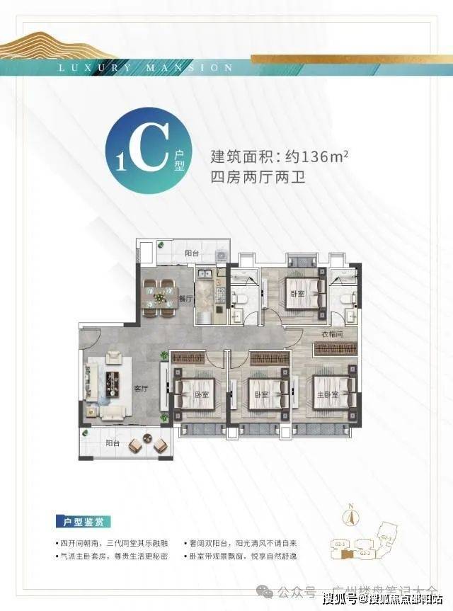 ⑤新洋房:建面80-136㎡,3米层高,南北双向大阳台设计,私享空中泳池。