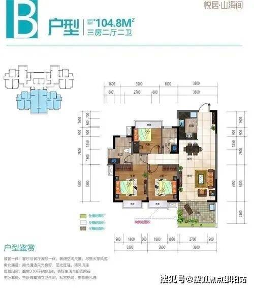 户型面积:101~106三房两厅两卫/两房两厅两卫