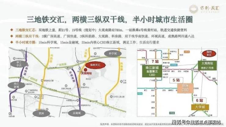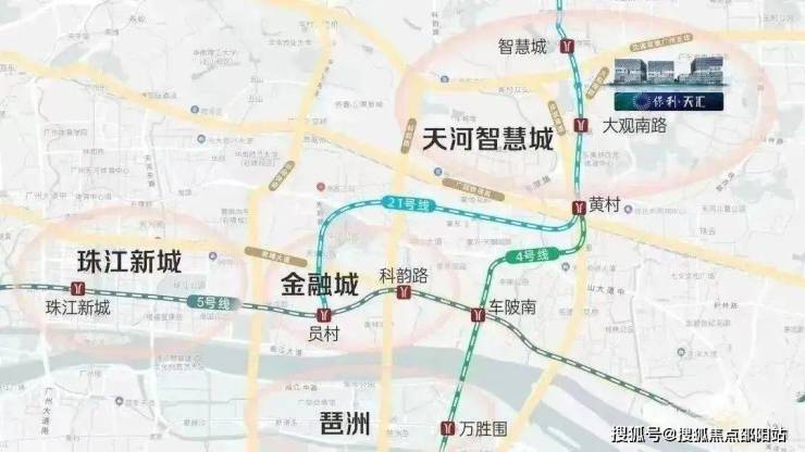 项目距离21号线大观南路站约1.2公里,步行大约20分钟可达,一站即可换乘4号线前往金融城及琶洲地区,四站后可在员村换乘5号线直达珠江新城。