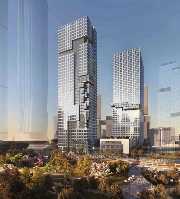 美学的建筑 城市的峰顶SLD、CCD、HHD三大设计机构联袂执笔,建筑形态引入中国传统高山流水意境,外立面创新采用数码像素化表达,焕新城市天际。