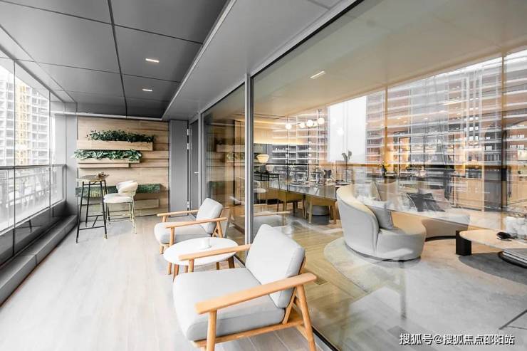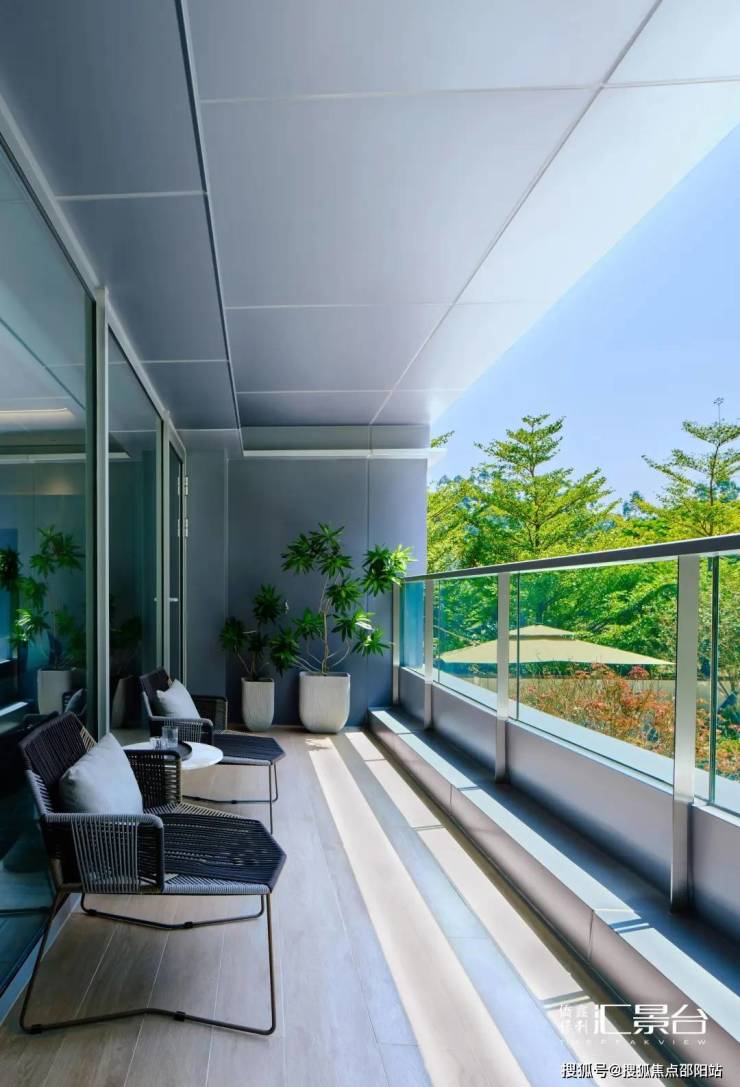 大部分户型都有270°极致观景台,同时配备了广州首例电动外遮阳系统,拉下窗帘之后依旧可以看到外面的风景。