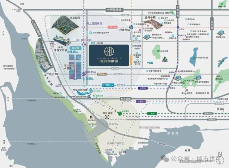 二、前海会展旁 · 御领湾芯生活御时代:2.0前海门户,享一级利好辐射• 恒兴·御景园占据湾区发展经济主轴线及珠江东岸黄金中轴线,是粤港澳大湾区腾飞战略的“杠杆”,地处在大湾区发展中轴线上,享有国际湾区的核芯利好!• 前海8倍扩容至120.56平方公里,宝安占据扩容面积三分之二以上,本项目位于前海门户,享一级利好辐射。