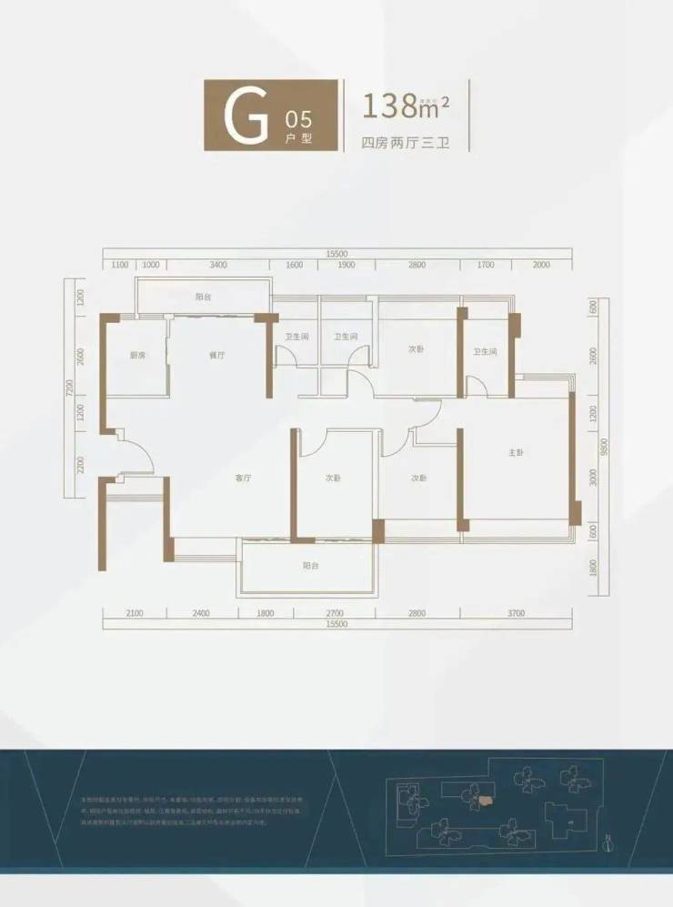 65㎡(2房1卫)、81㎡(3房2卫)、89㎡(3房2卫)、120㎡(4房2卫)、138㎡(4房3卫)