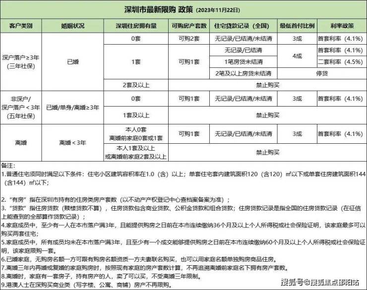 深圳限购限贷政策2023年11月22日深圳重磅宣布。二套房首付从原来的7/8成统一调整为4成。再加上8月30日深圳官宣认房不认贷政策,以及9月28日下调房贷利率,深圳目前购房信贷政策做了很大的调整。深圳买房条件