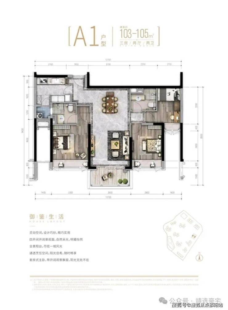 纯粹奢阔空间,敬献世代家族。建面约103-200㎡的纯粹大户型,全景观超大阳台将山、水、城景尽收眼底,双主卧套房设计诠释奢华尺度。户型整体方正,动静分区,融合人性化明厨与阔景双阳台,每一处细节都为尊贵家庭生活量身定制。