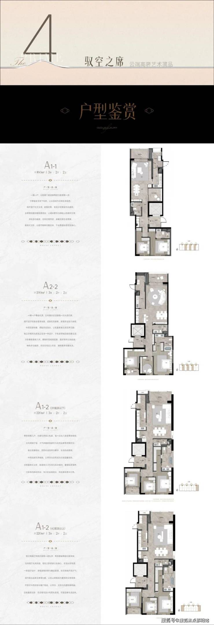 A座:建筑面积约160-220㎡2-3房(南北通透,专梯入户)