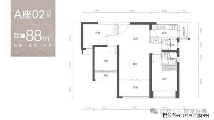 88-90㎡3房2卫660-793万 单价7.8-8.8万