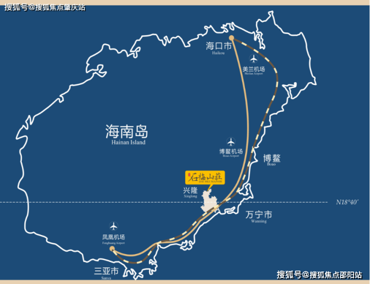 3大机场:海口美兰机场(约140公里) 、三亚凤凰机场(约98公里) ,琼海博鳌机场(约54公里)
