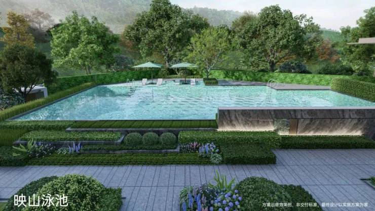 映山泳池:隐奢酒店度假感引入,巧妙将远处山景映入眼底,打造不过时的经典。