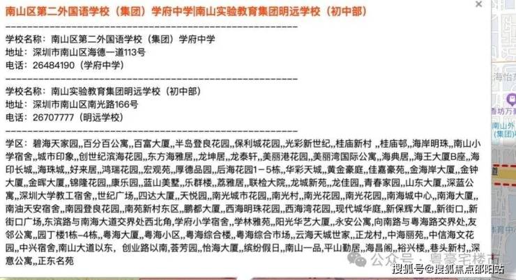 处南二外学府一小和南二外学府中学学区范围内,直线距离约900米还有深圳南山实验教育集团明远学校