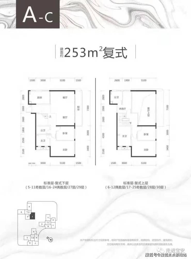 其中A座32层,B/C座34层,楼栋户型及周边道路分布见下图:
