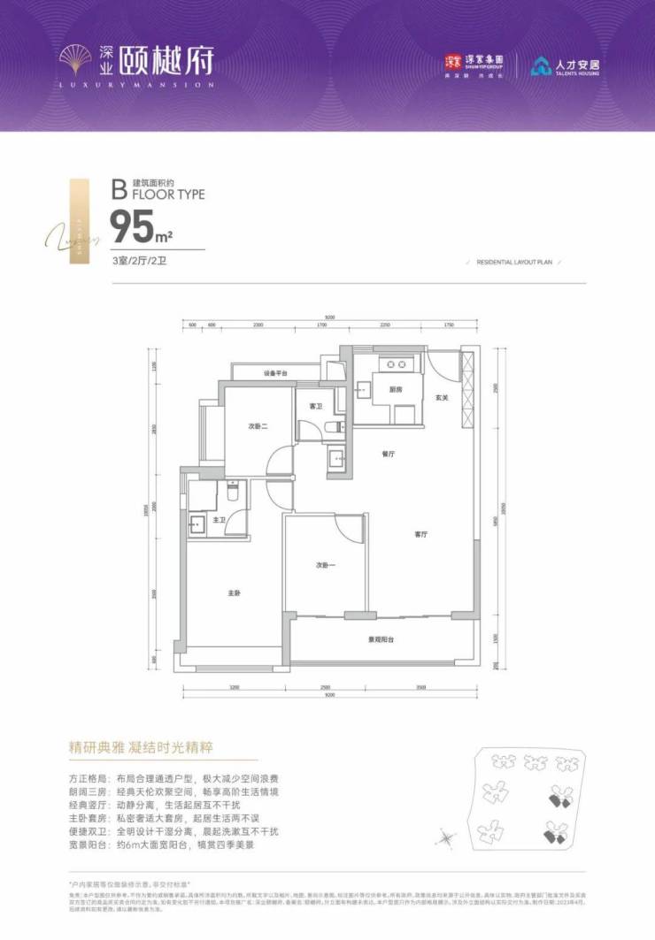 **建面约95㎡ | 3室2卫 | 总价680万起**