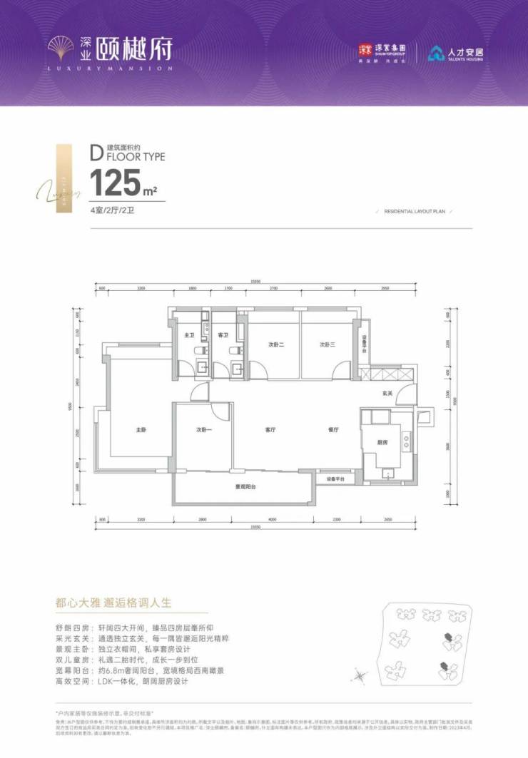 **建面约125㎡ | 4室2卫 | 总价864万起**