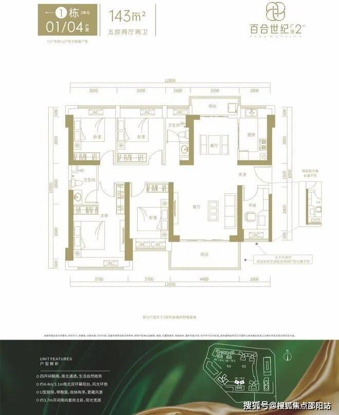 建面约143㎡的5房2厅2卫