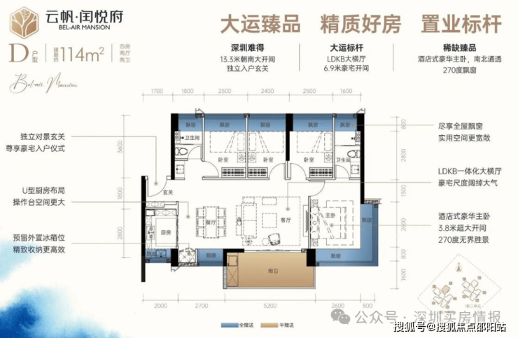 龙岗中心城,润悦蓝湾公馆【备案名为云帆•闰悦府】首推1栋1/2单元共148套房源,建面约73-114㎡2-4房,容 积 率4.3,梯 户 比二梯五户,车 位 比约1:1.4,户型图已经全部发布。项目所有房源均为东南、西南或南北通透朝向,通风采光优势显著。