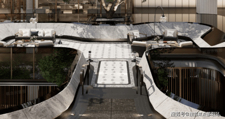 这个被整体抬升、巧妙整合了落客大堂、社区大堂、茶语轩等所有归家与服务功能的“底盘”。这里就像一个沉稳的基座,托举起上方全部生活的静谧与尊崇感。
