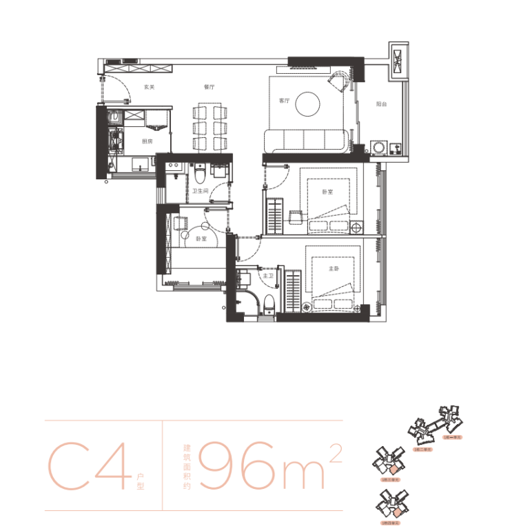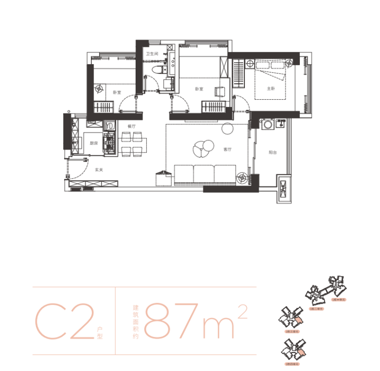 户型推出住宅1044套,面积87-95-105-112-120㎡。