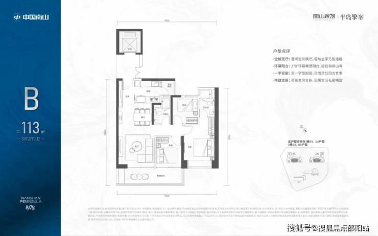 113㎡的3房2厅2卫:位于2-30F,全朝南向,带6.5米宽大阳台。