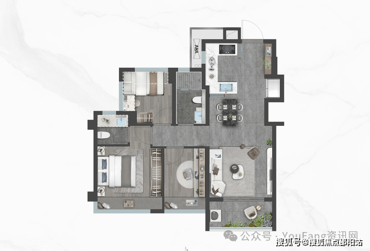御雲:建面约80㎡,三室两厅1.9卫,创新型1.9卫设计,臻享从容生活