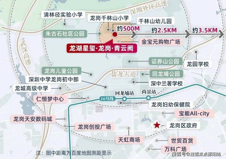 龙湖星玺·青云阙项目位于龙岗区龙岗街道五联片区清芳路与清悦路交汇处,跟龙岗区政府直线距离约3.5公里,直接锚定中心,附近就是万科清林径、国香尚居、承翰陶源花园等多个已交付的小区,片区生活氛围浓厚。