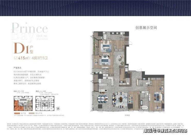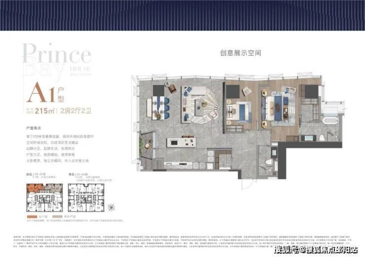 大平面大尺度定位,层高约3.6米,横厅设计确保最大化观景面,全户型纵享环幕视野。项目打造主力建面约215-415㎡纯粹品质公寓共191席,顶层为建面约1270㎡公寓产品。