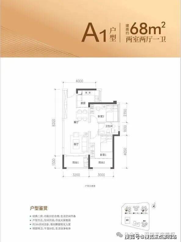 格局:竖厅设计,客厅3.2米开间,8.2米进深。
