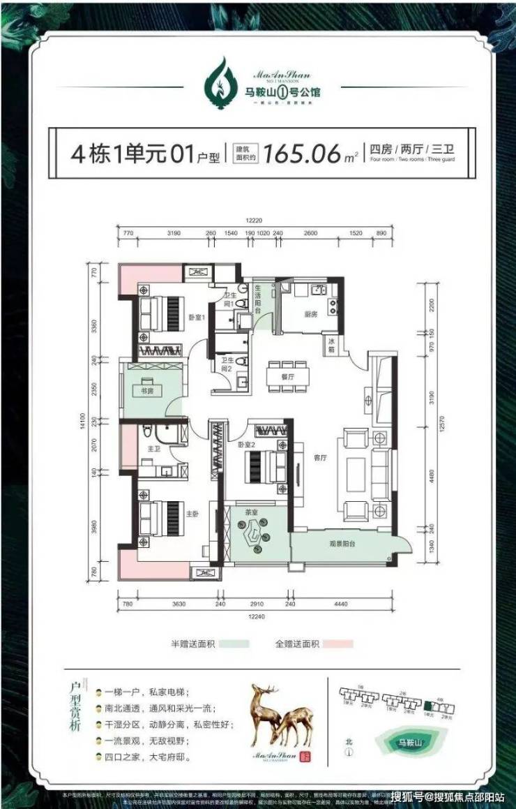 01户型:165.06平米 5*2*3 均价:24280 元 独门独户 南北通透