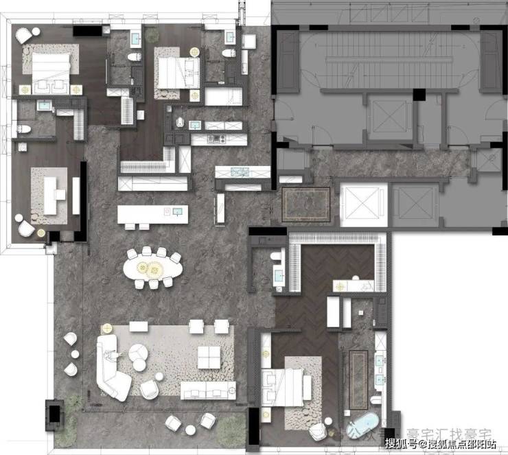 💎 3梯两户约380㎡大平层,专梯入户,镜像对称户型