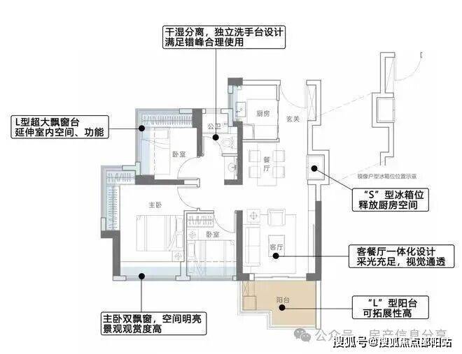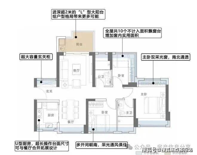 ●套房主卧约180°大开窗面,全屋近10个飘窗,赠送面积高达19%;