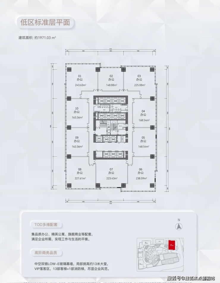 ◎建面约148-2000㎡灵动空间,标准层高4.2米,采用中央核心筒,实用率约71%。售楼处电话:400-166-9557。
