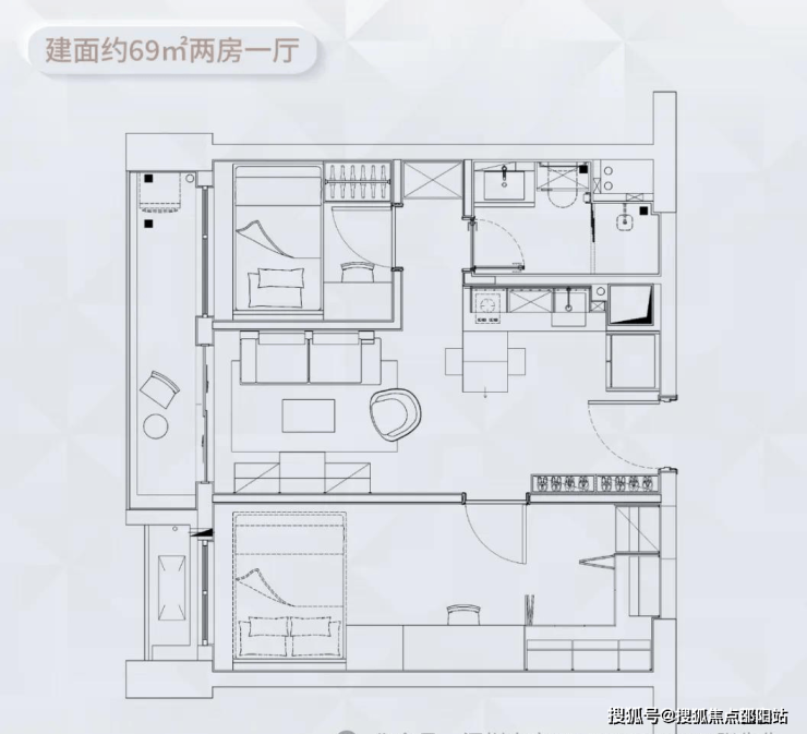 C户型建面约69㎡两房