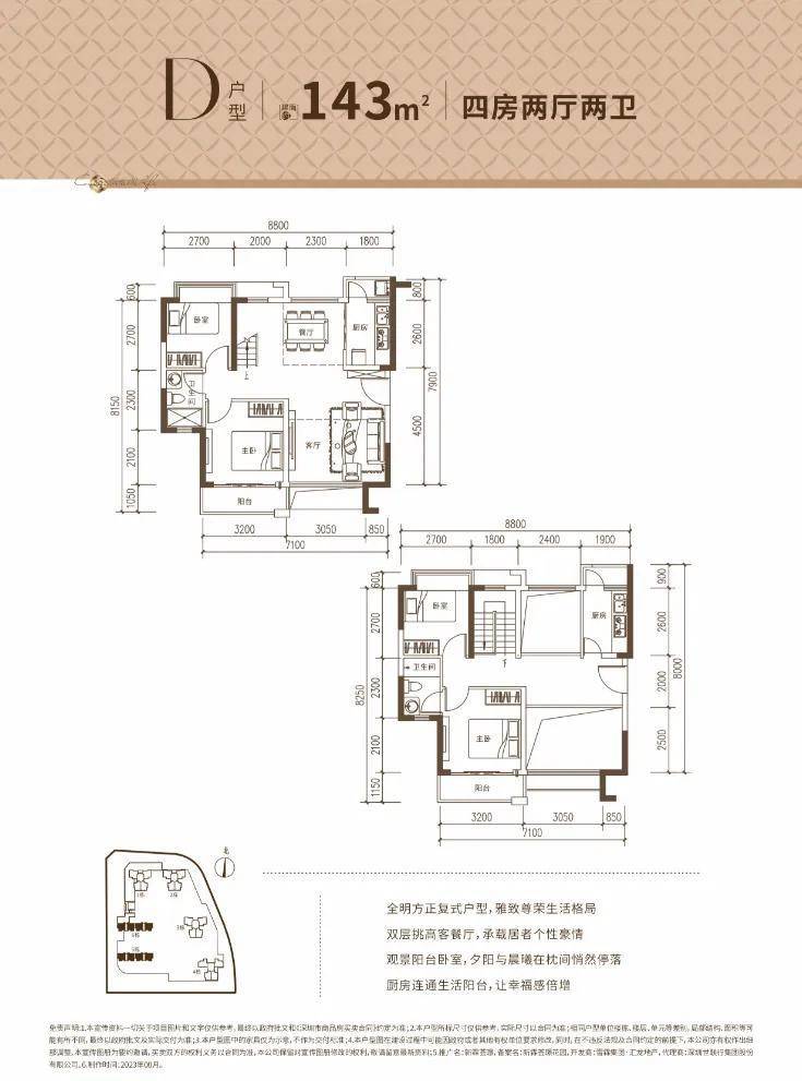 D户型:约143㎡4房2卫2阳台