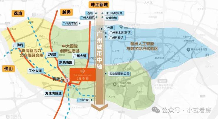 紧邻2号线和广佛线换乘站南洲站,直线距离仅一百米,可以说出门就是地铁站。