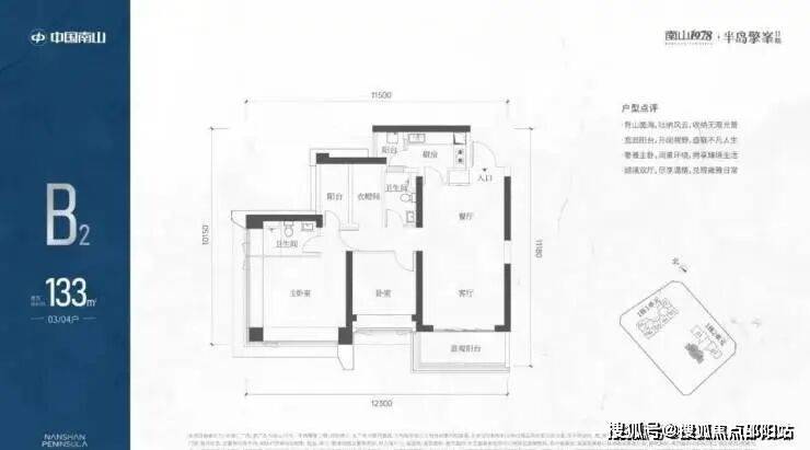 B2有两条腿,分别1-2栋03/04,主朝向西南向,竖厅设计。