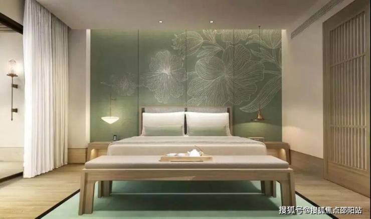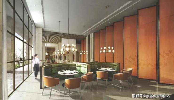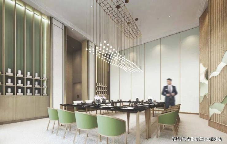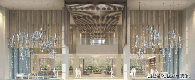 隨著旋轉樓梯步級而上,空間的曲調越發奔放高昂,空間的色彩融入了三亞當地熱帶的色彩,愈發熱情。特色餐廳空間中洋溢著濃鬱的熱帶氛圍,蔥翠的叢林色彩襯托出劍蘭的奔放與熱情。中央的輕質隔牆藝術裝置讓空間視線變得豐富而多樣化。