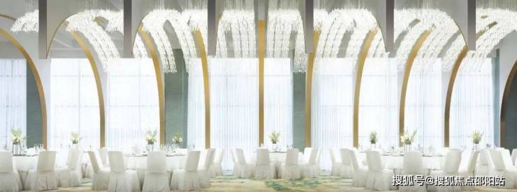 蘭園中白色的宴會廳處處營造的一種浪漫的空間氛圍,夏日西方伊甸園氛圍景象印入眼簾。連續交錯的半拱形黃銅金屬結構一改原有方形空間的單調,天空中垂吊的弧型藝術燈具似極了一簇簇垂吊在金屬藤架上的白蘭花。未來選擇在蘭園舉行婚禮的人,些許是為了圓兒時一個浪漫的願想。