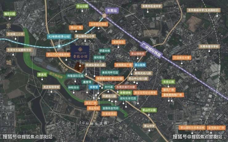 项目紧邻主干道茶山北路,距R2线茶山站仅700米,成就名副其实地铁物业,依托东莞火车站,串联广深和谐站,接驳广深两地,以火车站、地铁站构建的双TOD辐射优势。