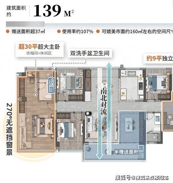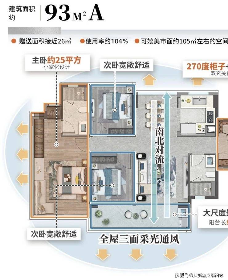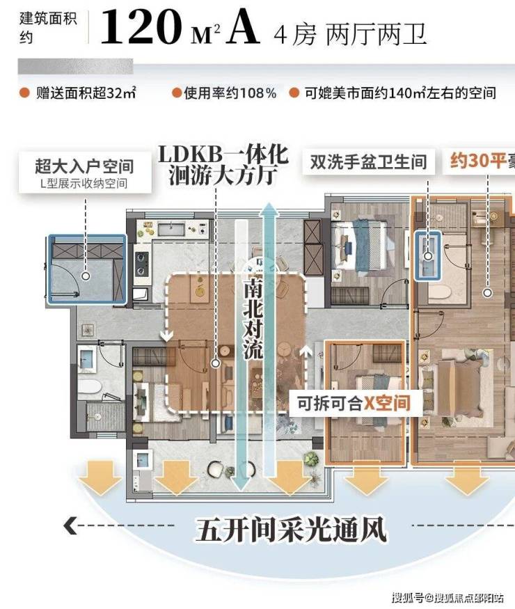 它通过“0飘窗”、超大入户空间等灵动空间,将使用率直接拉到约104-110%,很难不让人高看一眼。