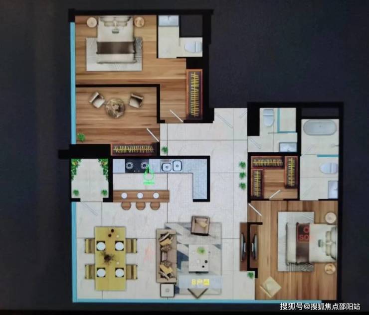 366㎡平层,4房3厅4卫4阳台+工人套房+洗衣间