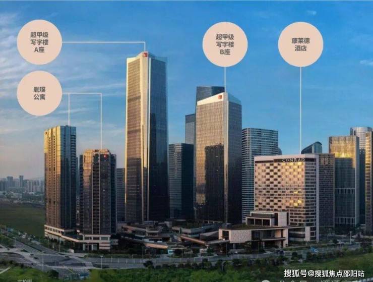 总建筑面积:超34万㎡(2栋甲级办公楼、1栋五星级酒店,2栋服务式公寓)