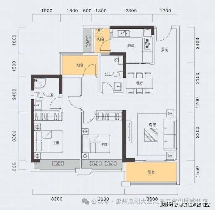 97㎡两房两厅两卫三阳台(A1户型)