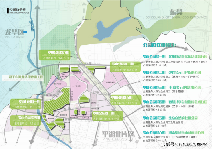 <休闲>:项目内镶山厦公园,直线距离约2.5km有平湖生态园、罗山自行车郊野公园、观澜山水田园旅游文化园、中科谷公园,安家平湖自然生态圈,满足一家人的休闲需求。