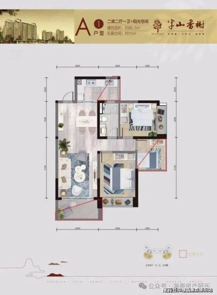 项目总占地95亩,建筑面积近13万平米,是项目由10栋住宅1栋综合楼3栋商业楼和1栋托儿所共组成(一栋二层的综合楼、一栋一层商铺、二栋二层商铺、二栋十四层住宅楼、八栋十六层住宅楼和一栋独立的托儿所,建筑密度仅16%,以山体的高低落差呈现热带滨海风情景观,打造与自然共生的坡地建筑群,采用高层低密度的布局方式,降低建筑密度,最大限度地获取开阔的外部空间环境真正做到了大楼距、大院落布局。