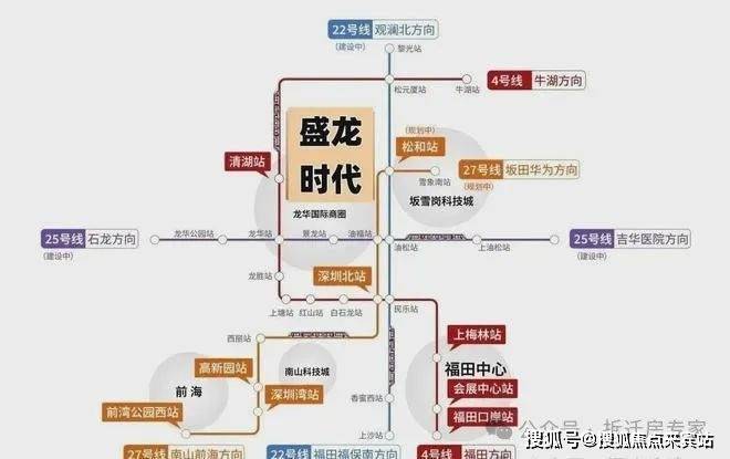 交通配套:盛龙时代家门口就是4号地铁线“清湖站”,5站到深圳北站,6站到南山,8站到福田,另外还有27号地铁线“松和站”距离约1.3公里,正在建设中。