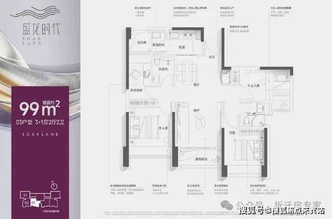 【户型面积】约99㎡3+1房2卫/95㎡3房2卫