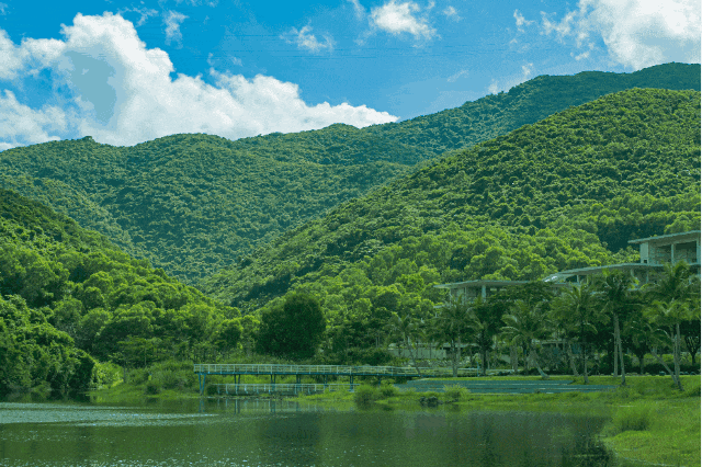 新湖·海棠春晓位于海棠湾南片,铁炉港内海西岸,白石岭万亩热带雨林环抱,内含蓝月湖(原高村水库),海洋、森林、山峦、湖泊在此一望尽收。园区建筑依约60米自然地势高差精妙排布,确保每一席墅品或傍山、或观湖、或瞰海……