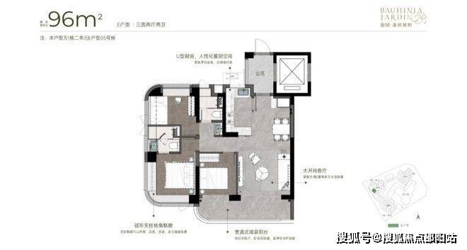 3.户型设计合理:主打96-142平方米的三至四房户型,采用建筑新规设计,使用率最高接近100%,且每户都有独立电梯厅。