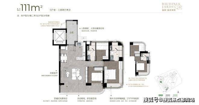 270°弧形无柱大尺度飘窗、大宽厅、大阳台,带来更多使用空间。