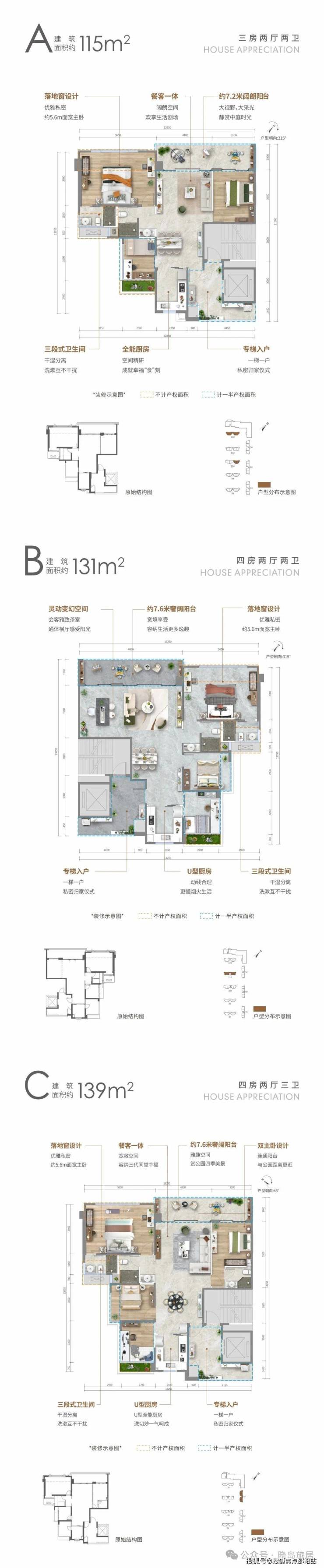 🏠C户型: 约139㎡四房两厅三卫