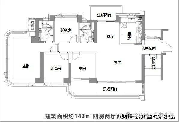 主力户型:建面128/143/173㎡三至四房(得房率超85%)